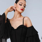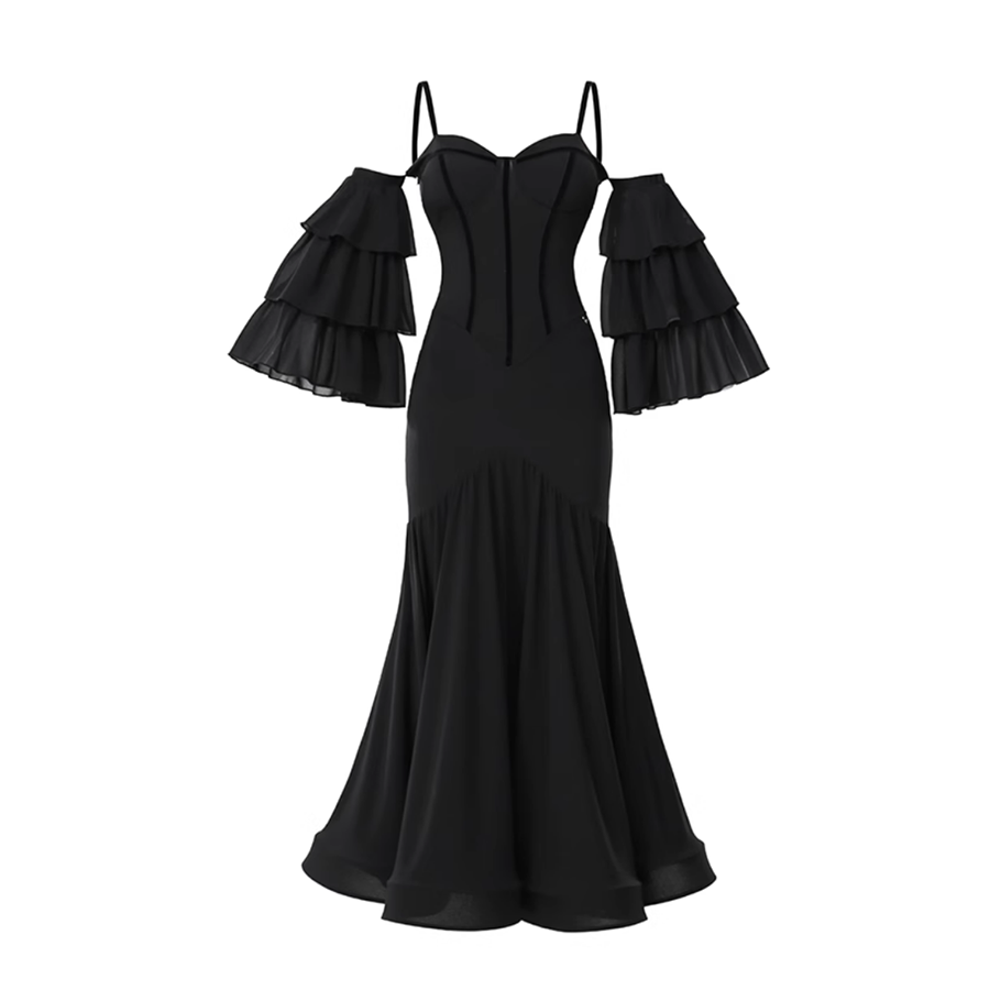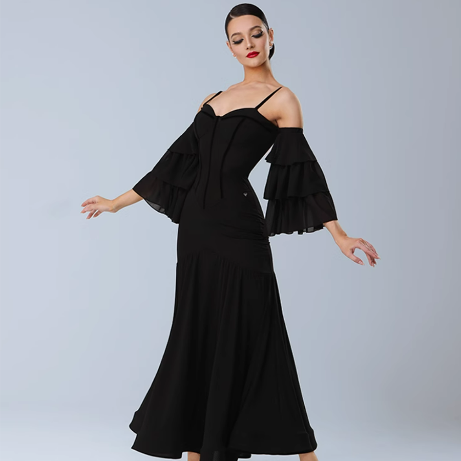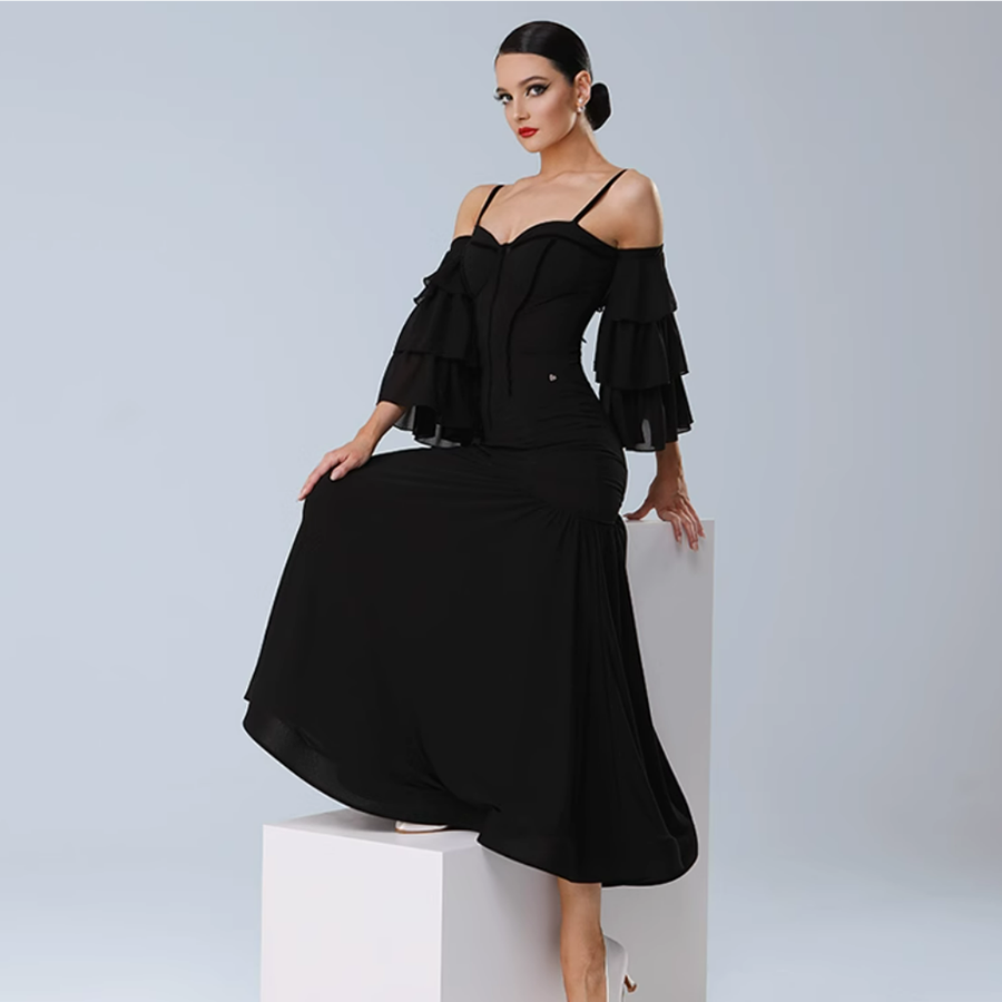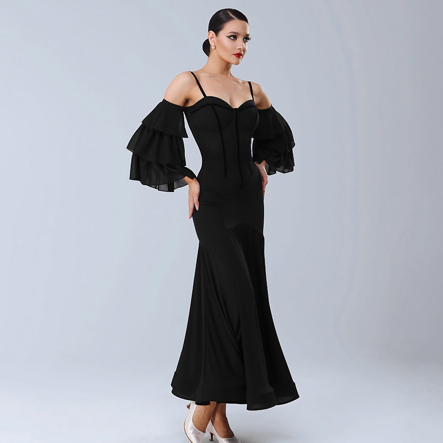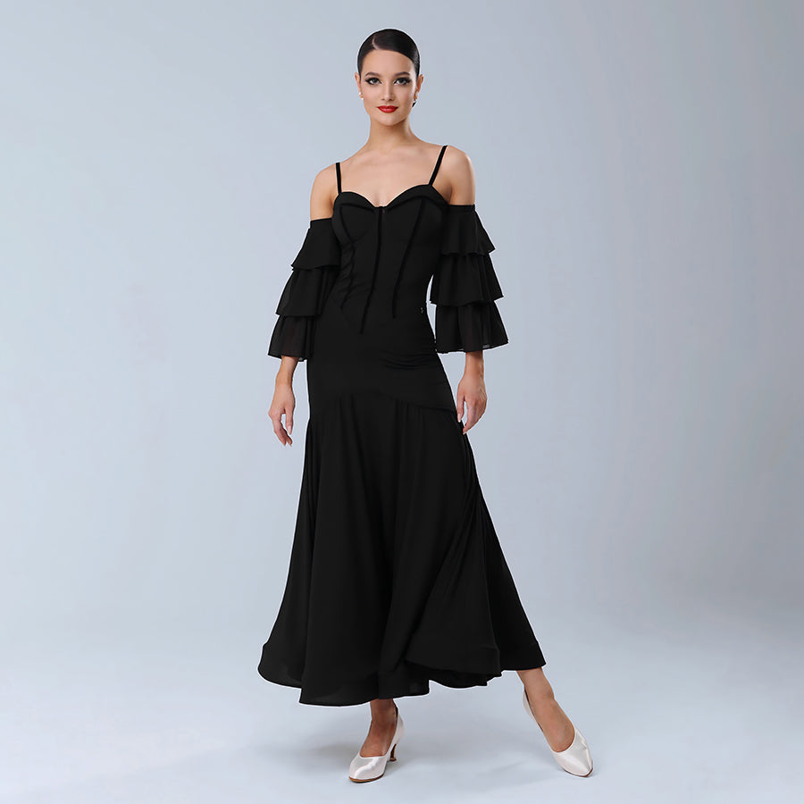 TID Customisable Women's Off Shoulder Black Dance Dresses Performance Competition Dancewear