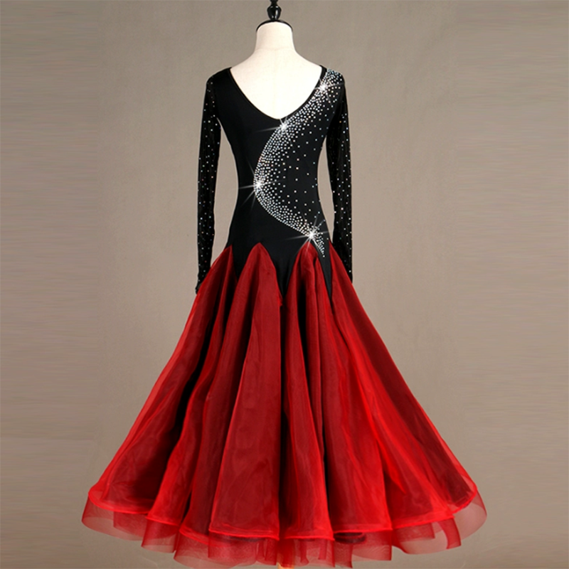 Customisable-Women's Long Sleeve Diamond Waltz Ballroom Dance Competition Modern Dance Large Swing Dress