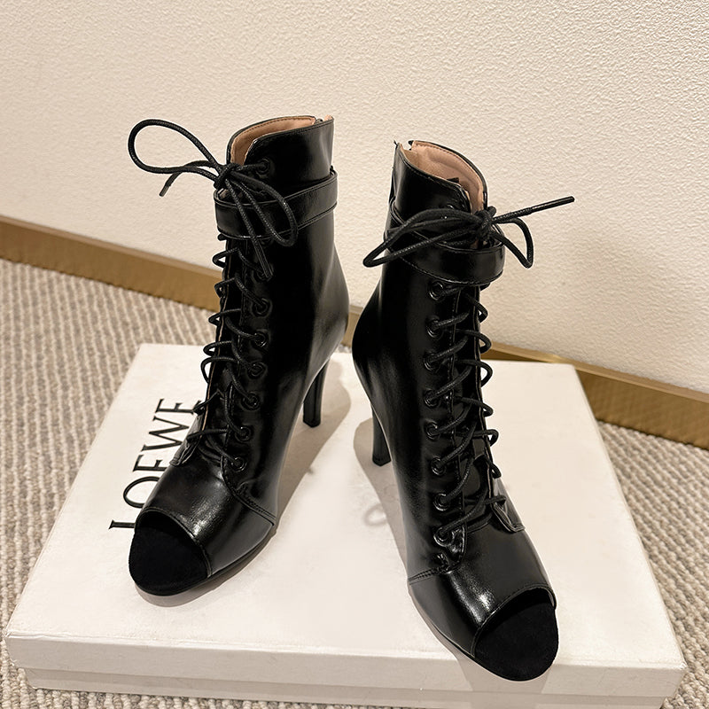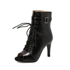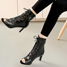 DS Women's Black 7cm/9cm Heel Rubber Sole Leatherette Jazz Shoes Open Toe Dance Heels Boots