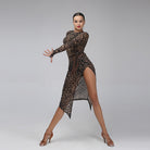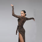 Women's Leopard Print Milk Silk Fabric Latin Dance Dress Rumba Chacha Samba Cowboy Bullfight Dance Wear