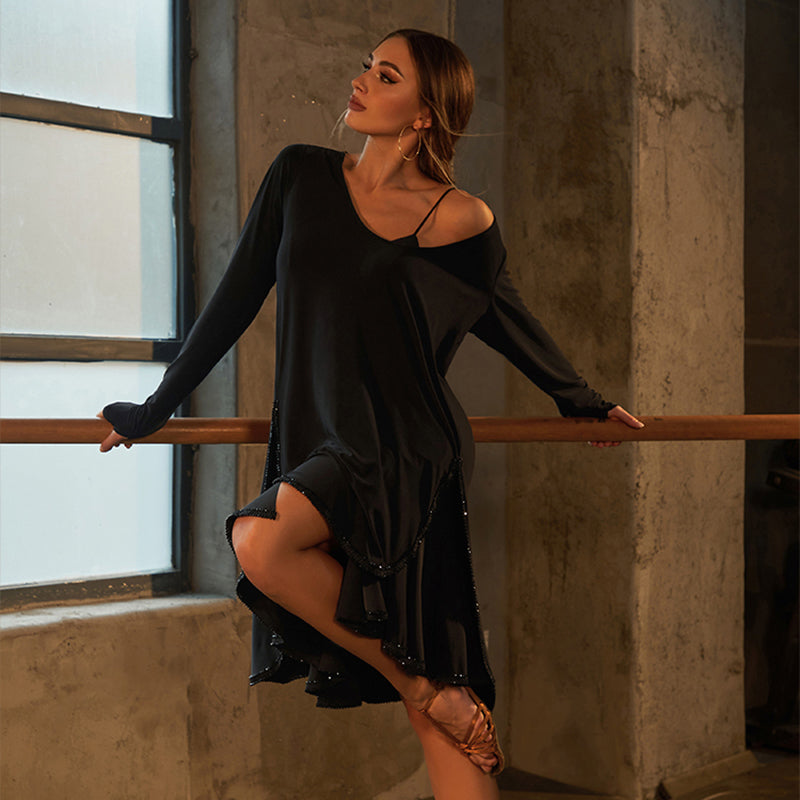 Z Women's Long Sleeve Latin Dance Dress Dance Wear Training Performance Dress