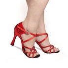 DS Women's Red Customized Heel Open Toe Strappy Latin Dance Shoes with Crystals