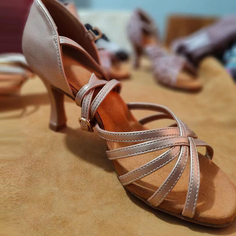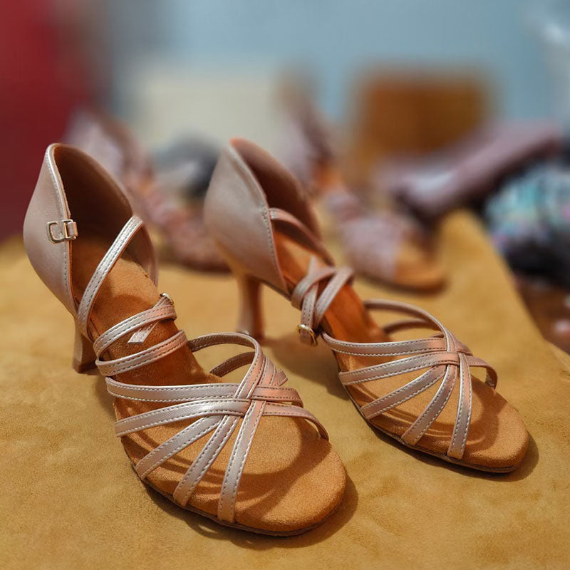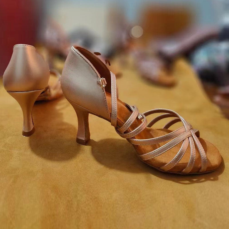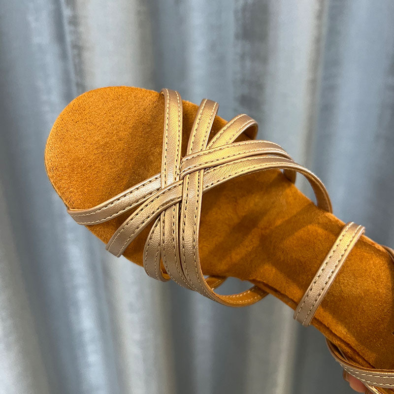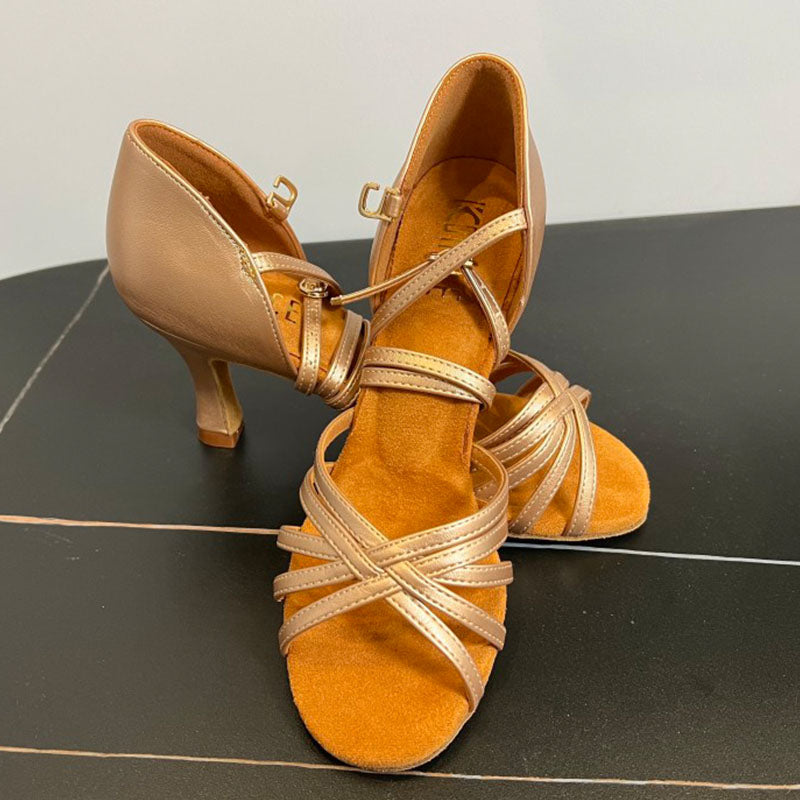 KCDANCE Women's Bronze Leatherette 5.5/6.5/7.5/8cm Heels Satin Strappy Dance Shoes Latin Dance Shoes