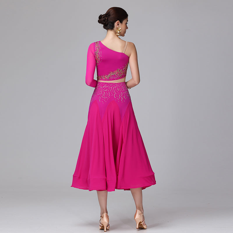 Customisable-Women's Off Shoulder Long Sleeve DanceWear Ballroom Dance Dress
