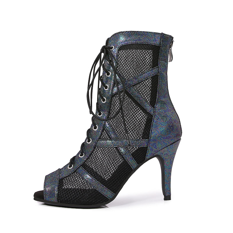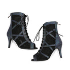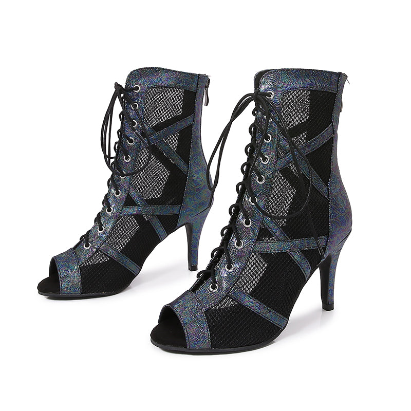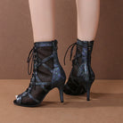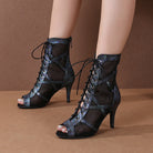 Women's Black Customized Dance Heels Rubber Sole Peep Toe Lace-up Jazz Shoes Dance Boots
