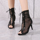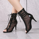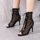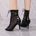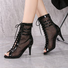 Women's Black Customized Dance Heels Rubber Sole Peep Toe Lace-up Jazz Shoes Dance Boots