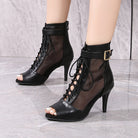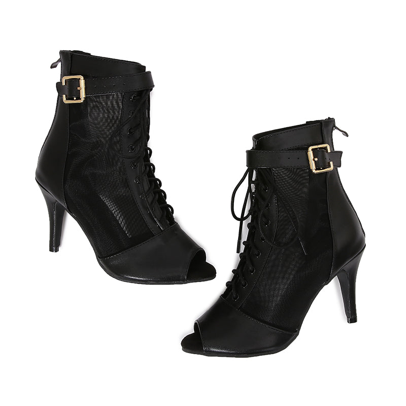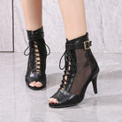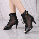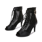 Women's Black Customized Dance Heels Rubber Sole Peep Toe Lace-up Jazz Shoes Dance Boots