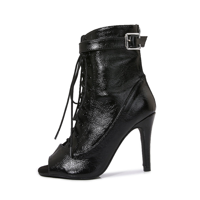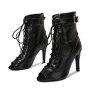 Women's Black Customized Dance Heels Rubber Sole Peep Toe Lace-up Jazz Shoes Dance Boots