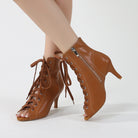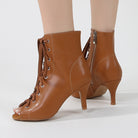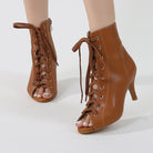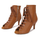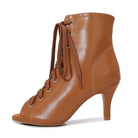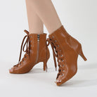 Women's Brown Customized Dance Heels Rubber Sole Peep Toe Lace-up Jazz Shoes Dance Boots