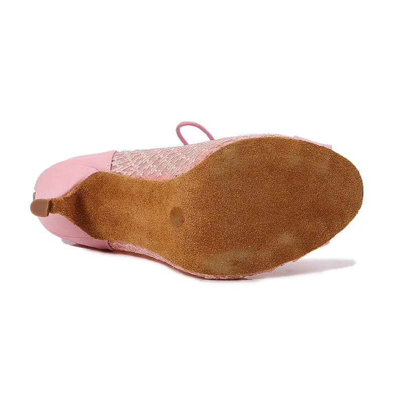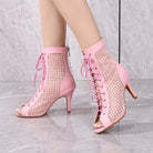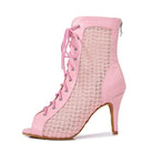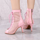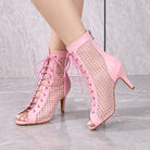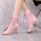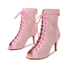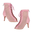 Women's Pink Customized Dance Heels Rubber Sole Peep Toe Lace-up Jazz Shoes Dance Boots