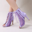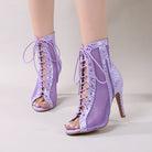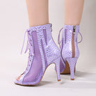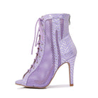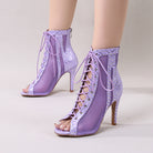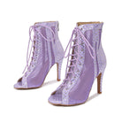 Women's Purple Customized Dance Heels Rubber Sole Peep Toe Lace-up Jazz Shoes Dance Boots