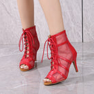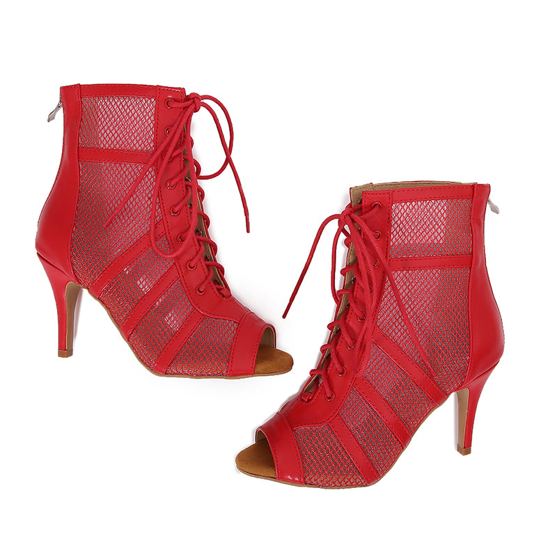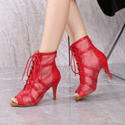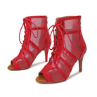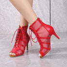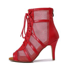 Women's Red Customized Dance Heels Rubber Sole Peep Toe Lace-up Jazz Shoes Dance Boots
