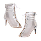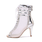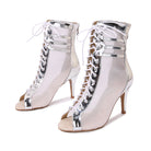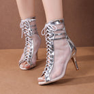 Women's Silver Customized Dance Heels Rubber Sole Peep Toe Lace-up Jazz Shoes Dance Boots