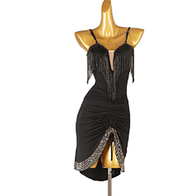 Customisable-Women's Spaghetti Straps Tassels Rumba Latin Dance Dresses Performance Dresses