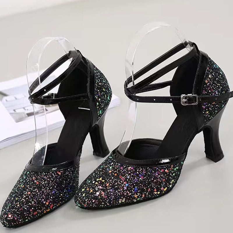 HW Women's Sparkling Glitter Customized Heels Ballroom Dance Shoes Modern Shoes