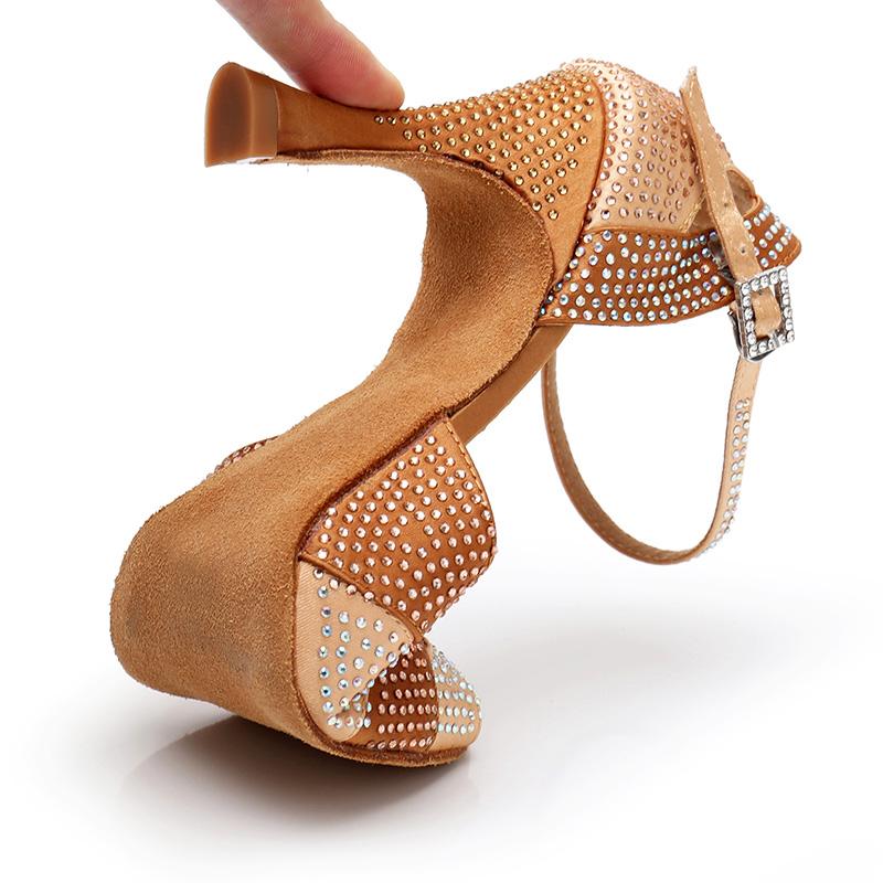 Women's Brown Semi-Crystal T Strap Dark Brown Satin Latin Dance Shoes Cotillion Shoes