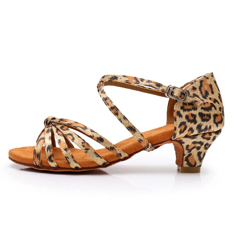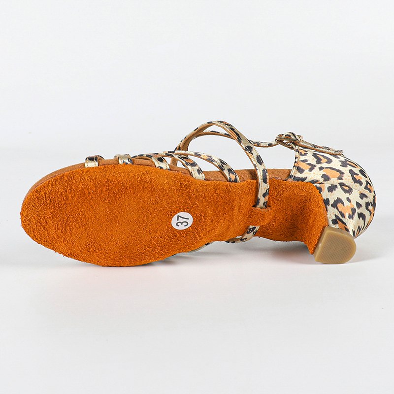 Women's Leopard Strappy 4.5cm Heels Ballroom Dance Shoes Latin Dance Shoes