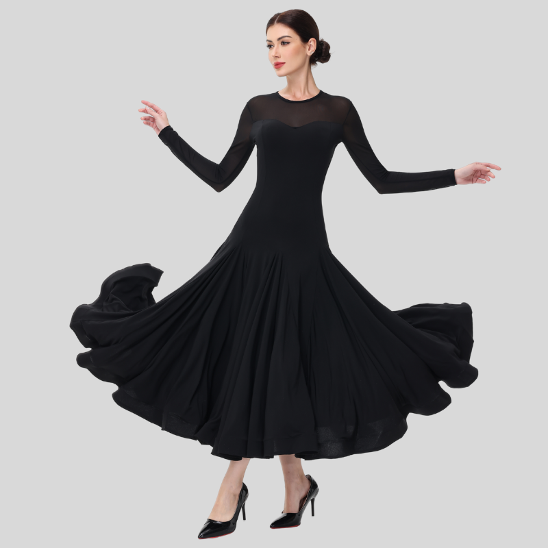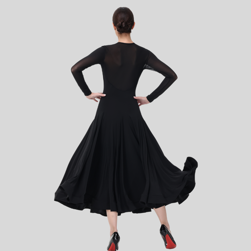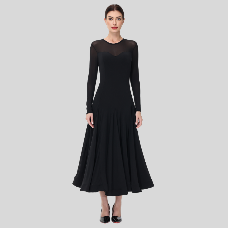 TID Customisable Women's Long Sleeve Black Dance Dresses Performance Competition Dancewear