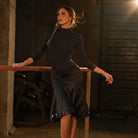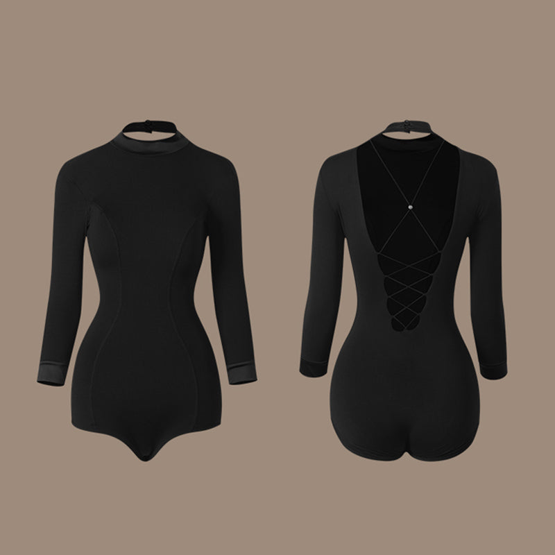 Z Women's Black Three-Quarter Sleeve Latin Dance Wear Dance Tops Bodysuit