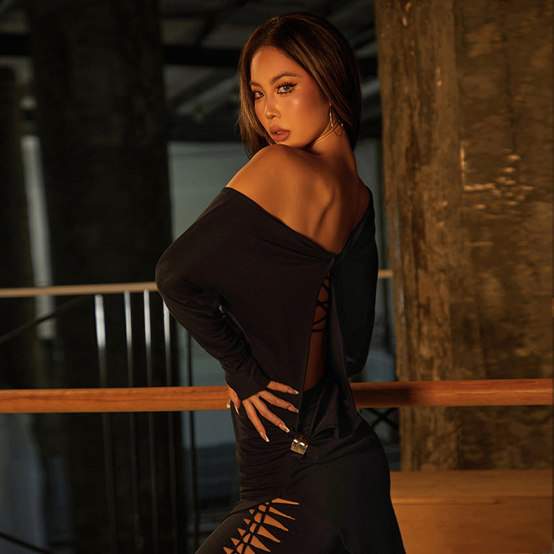 Z Women's Long Sleeve Latin Dance Dress Dance Wear Training Performance Dress