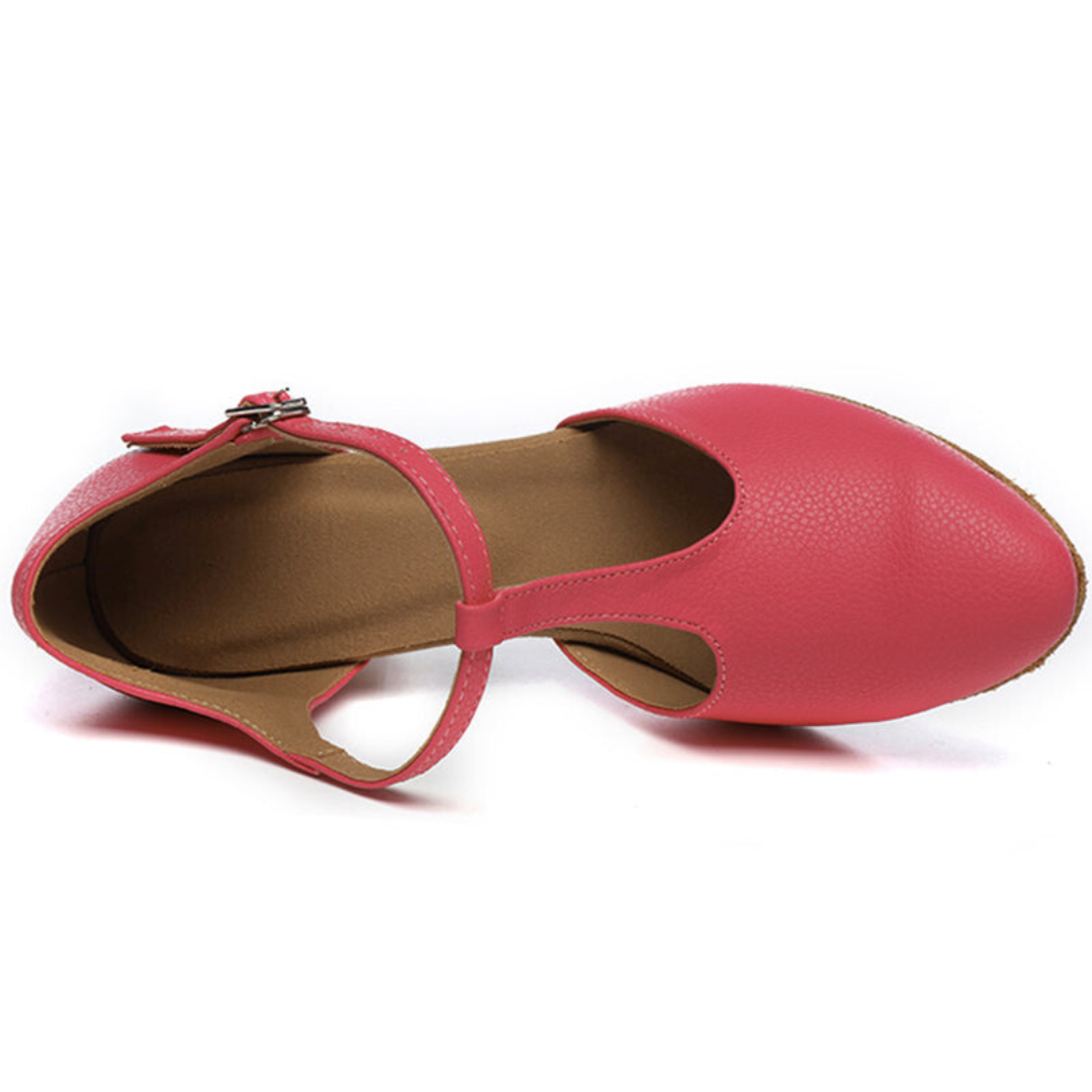 Women's Red Real Leather 5cm Heels Ballroom Dance Shoes Modern Dance Shoes