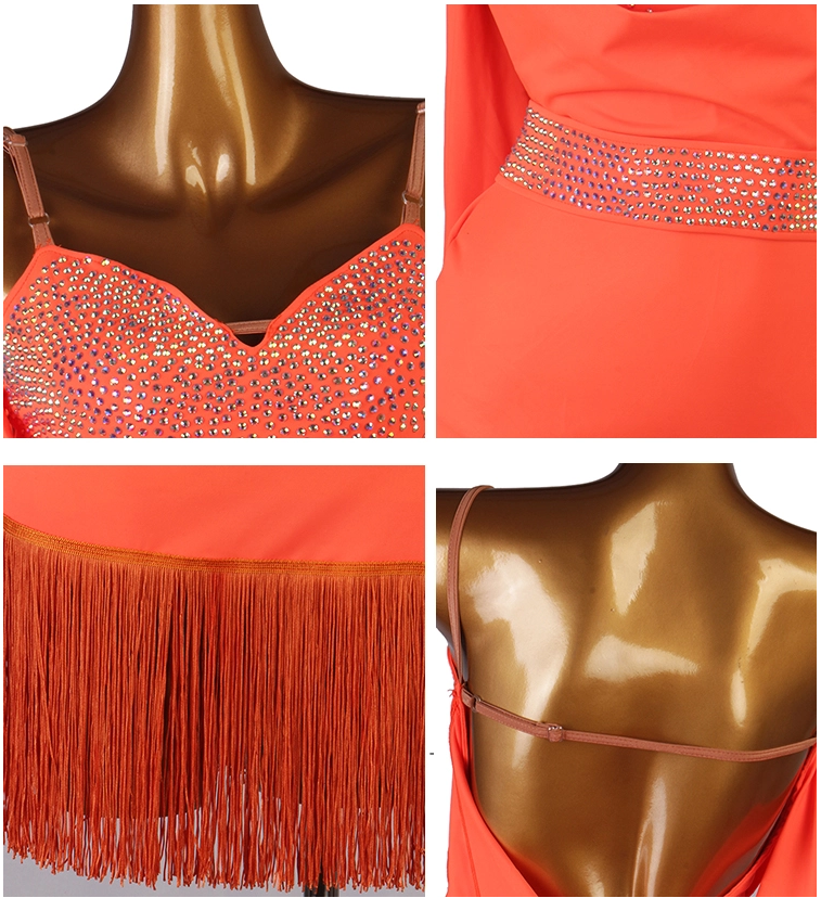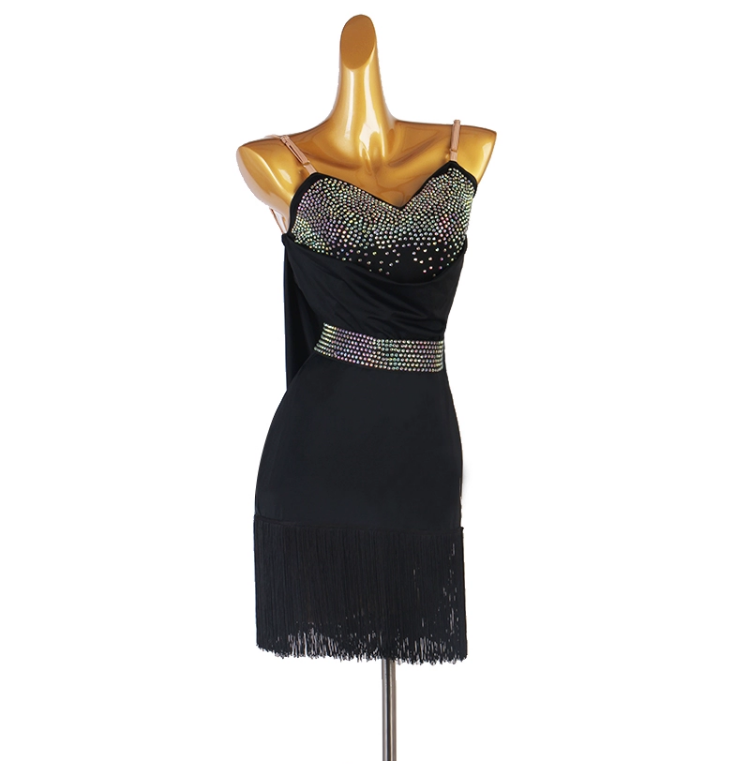 Customisable-Women's Rhinestone Tassel Rumba Latin Dance Dresses Performance Dresses