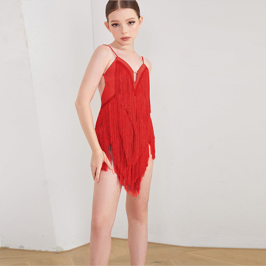Z Girls Tassel Sleeveless V Neck Performance Dance Dresses Dancewear