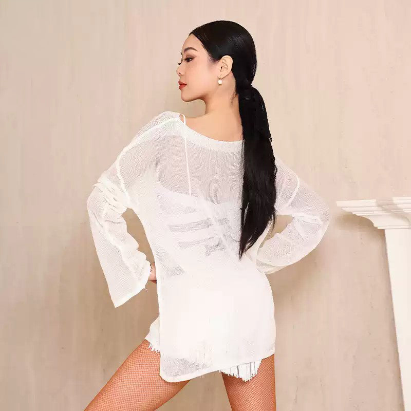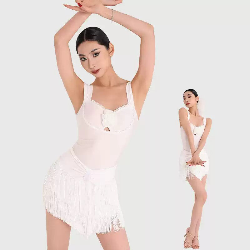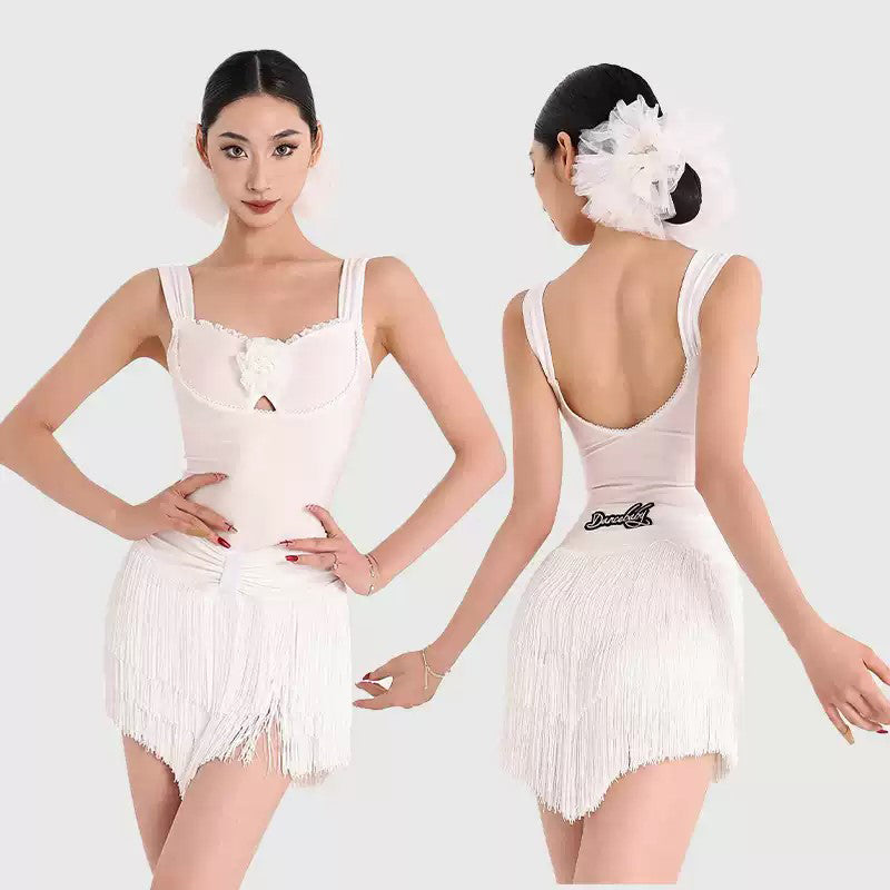 Z Women's Milk Silk Fabric Tassel Dance Dress Dance Wear Training Performance Dress