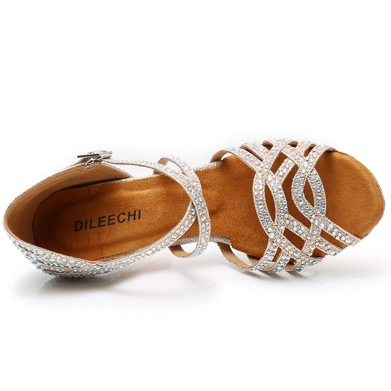 Women's Gray Rhinestone Sparkling Glitter Customized Heel Dance Shoes