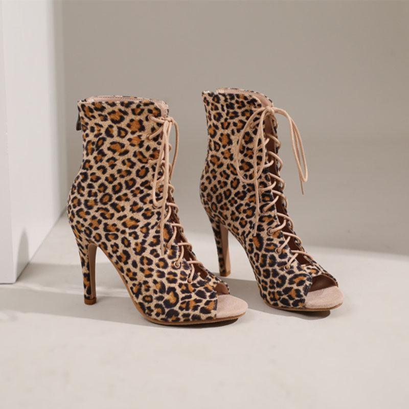 Women's 7cm/9cm Slim Heel Leopard Print Rubber Sole Leatherette Jazz Shoes Dance Heels Boots