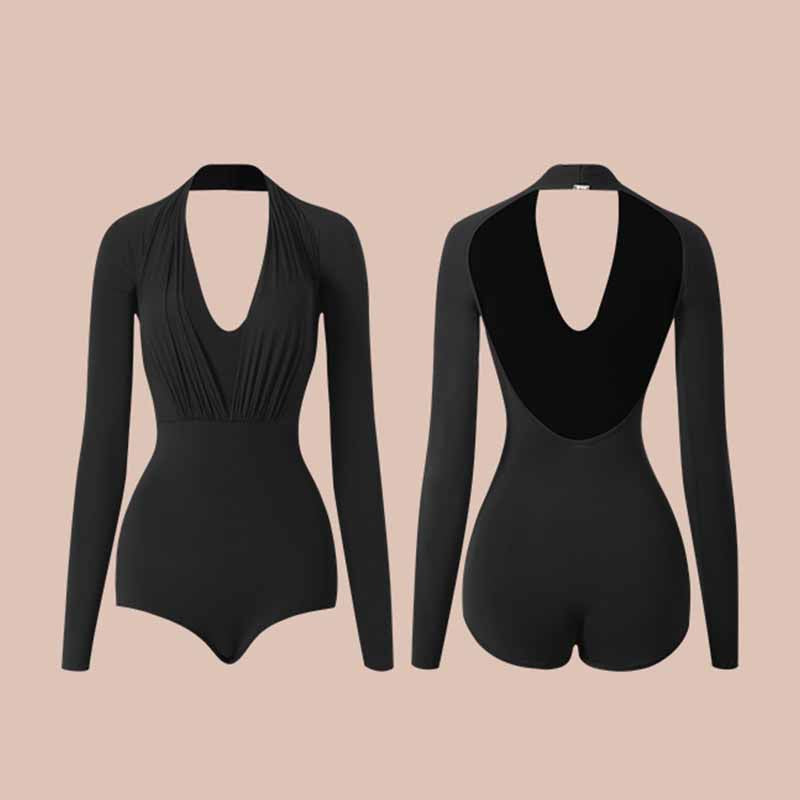 Z Girls Black Long Sleeve V Neck Latin Dance Bodysuit Dance Wear