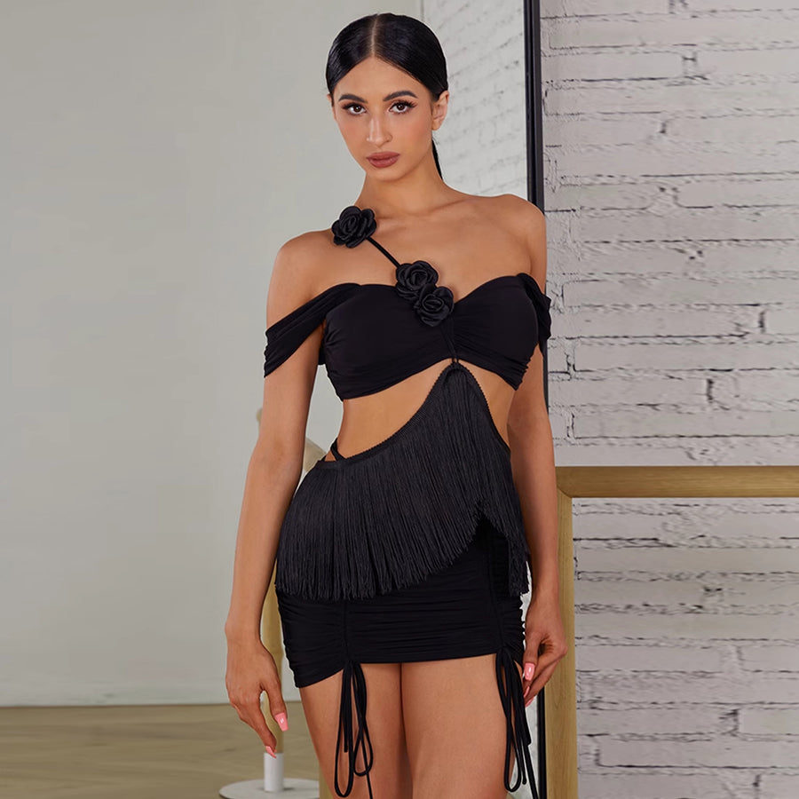Women's Milk Silk Fabric Tassel Dance Skirt Training Performance Dancewear