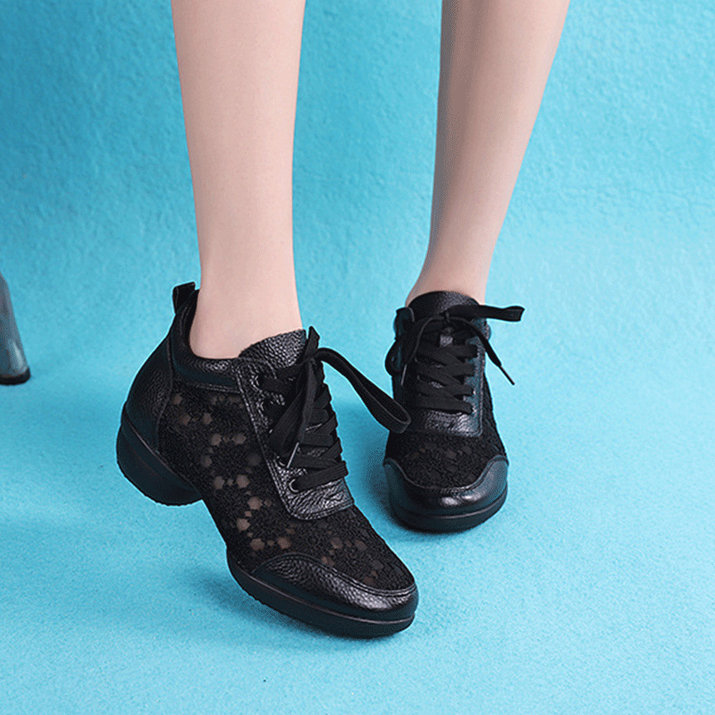 Women's Mesh Lace-up 4cm Heel Dance Sneakers Practice Dance Shoes Jazz Dance