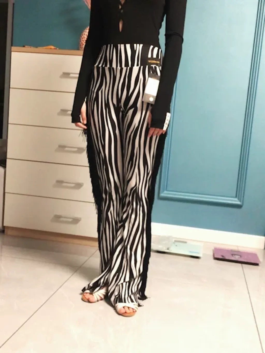 WJJ Women's High-waist Tassels Latin Dancewear Training Performance Dance Pants
