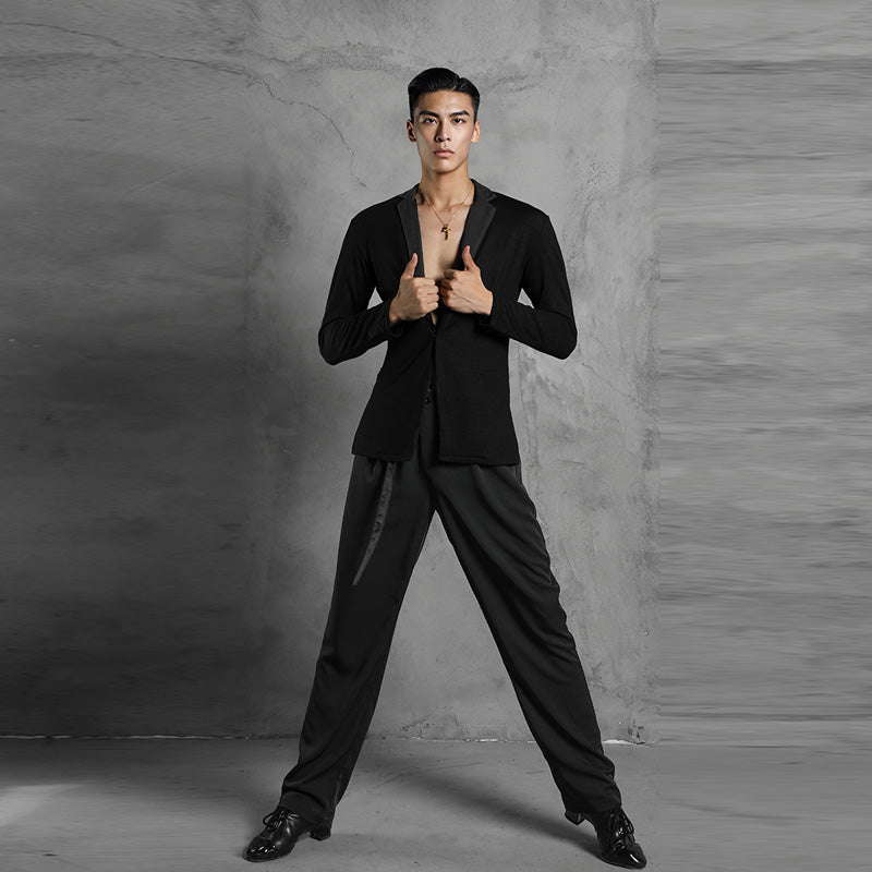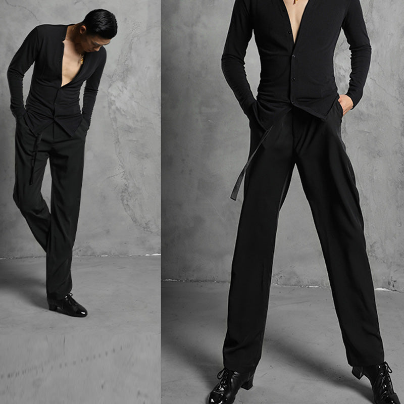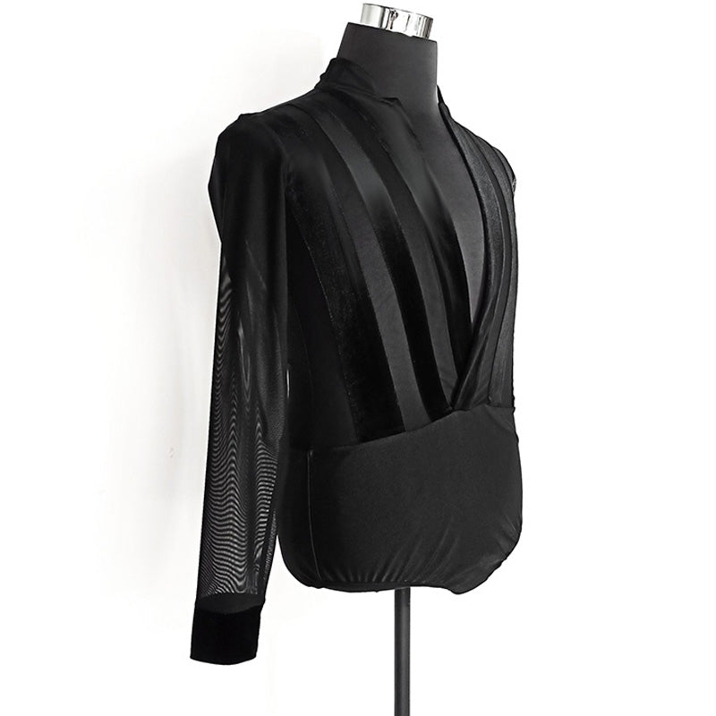 HC Men's Long Sleeve Round Neck Latin Dance Tops Dance Wear