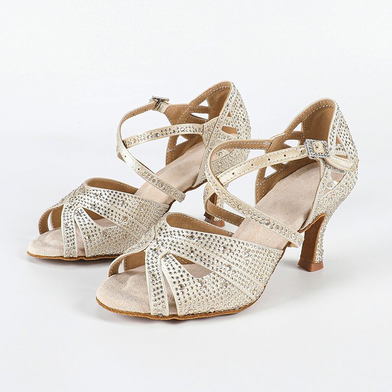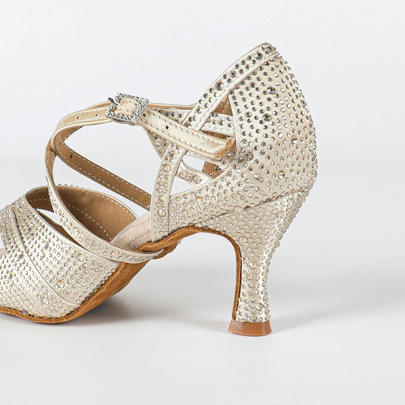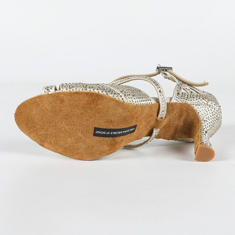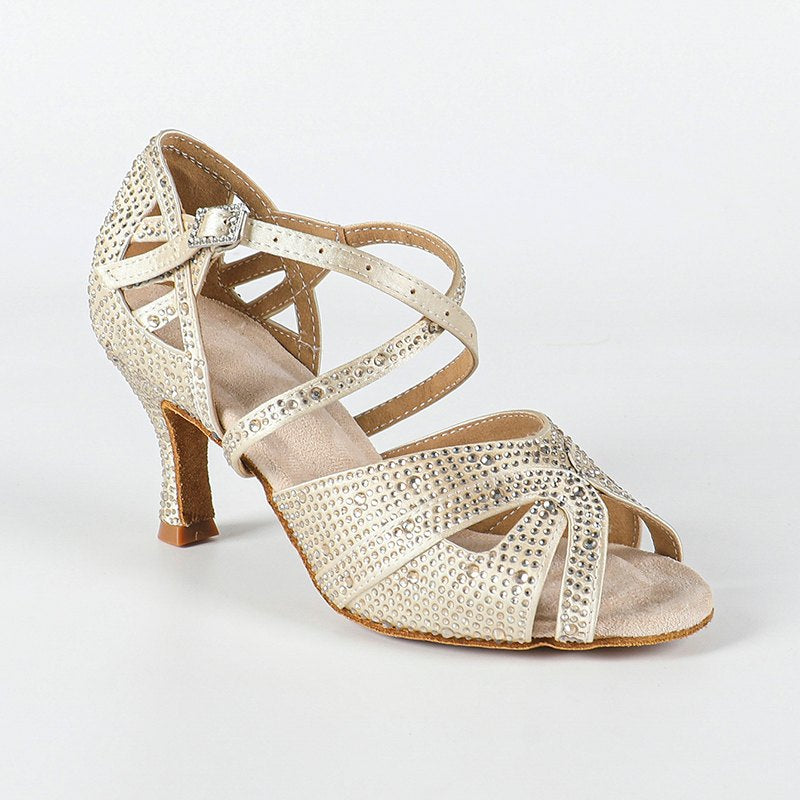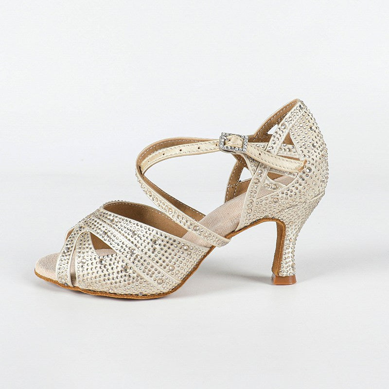 DS Women's Beige Customized Heel Open Toe Strappy Latin Dance Shoes