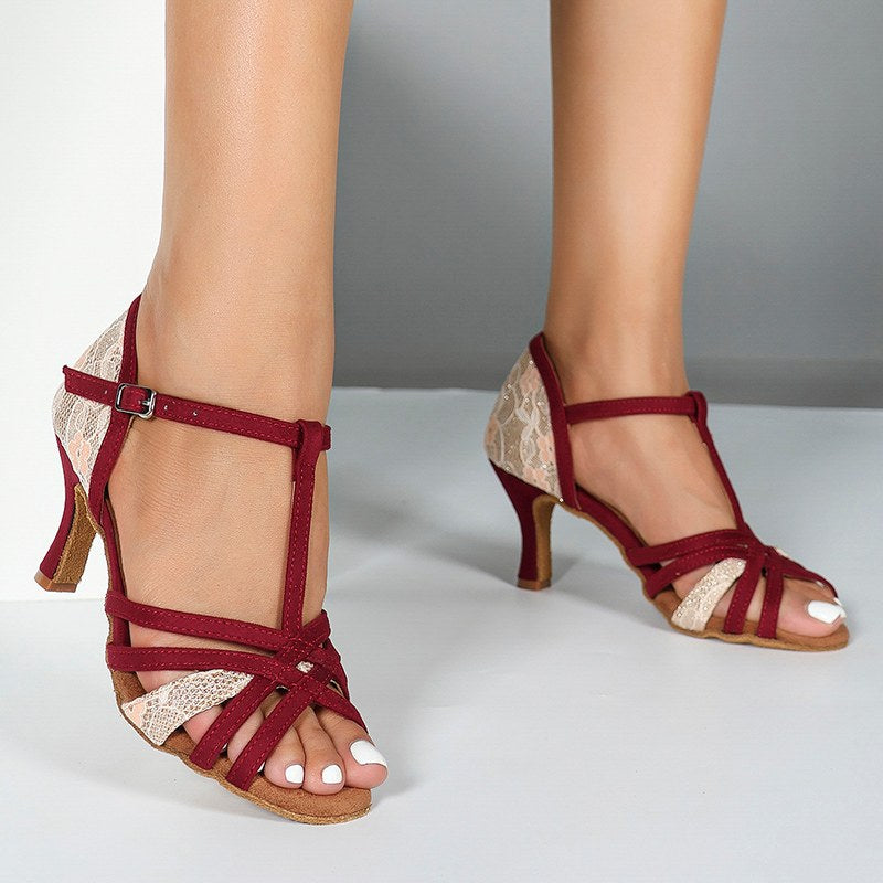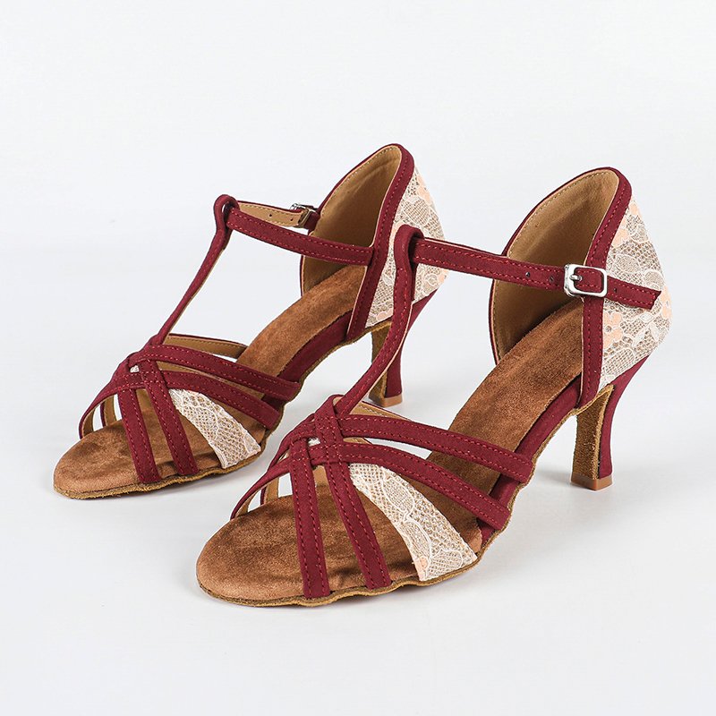 DS Women's Burgundy Customized Heel Latin Dance Shoes