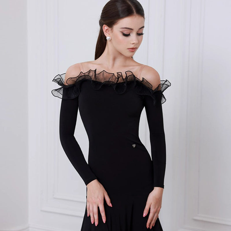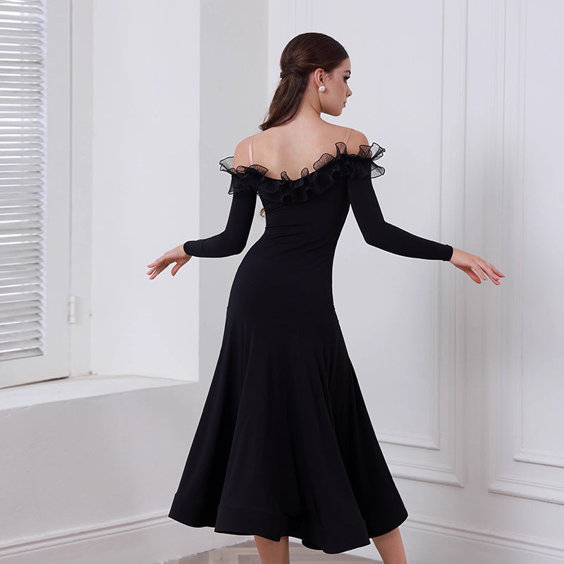 TID Women's Black Long Sleeve Dance Dresses Performance Competition Dancewear
