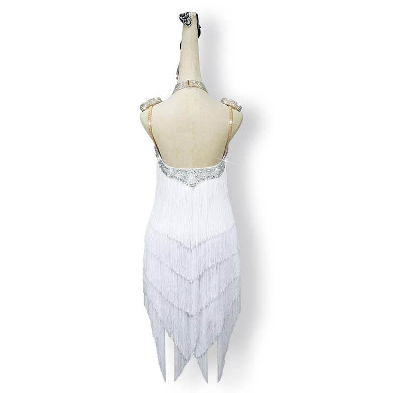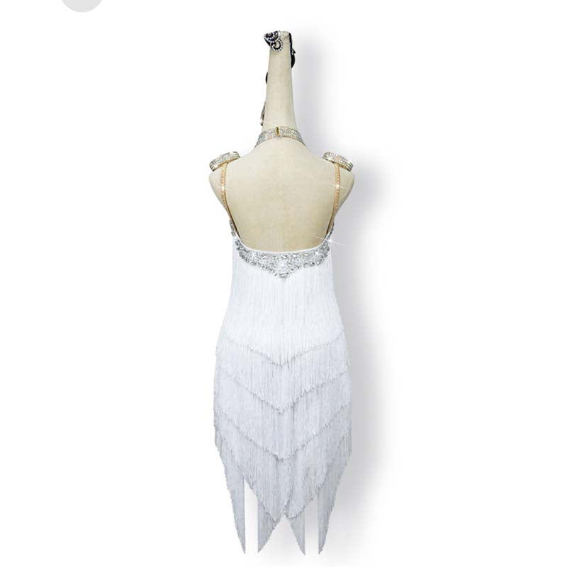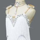 Customisable-Women's White Tassel Latin Dance Dress Professional Dance Stage Performance Wear