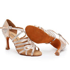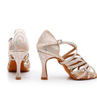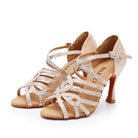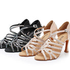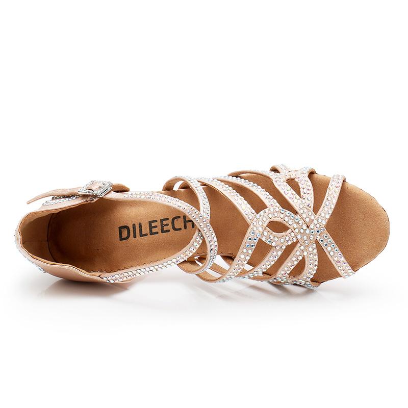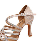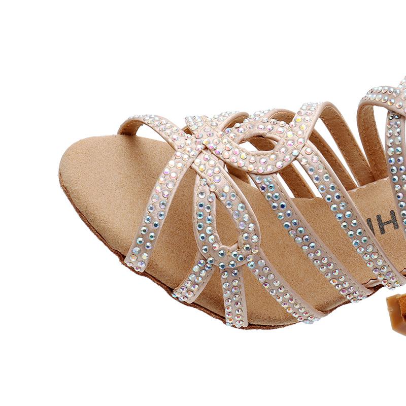 Women's Pink Satin Customized Heel Ballroom Rhinestones Strappy Dance Shoes