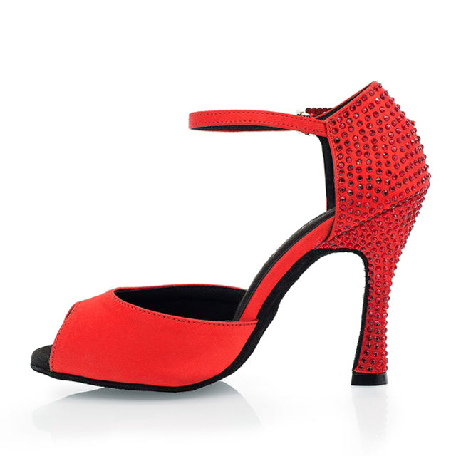 DS Women's Silk Satin Customized Heel Rhinestone Latin Shoes Salsa Shoes Ballroom Dance Shoes