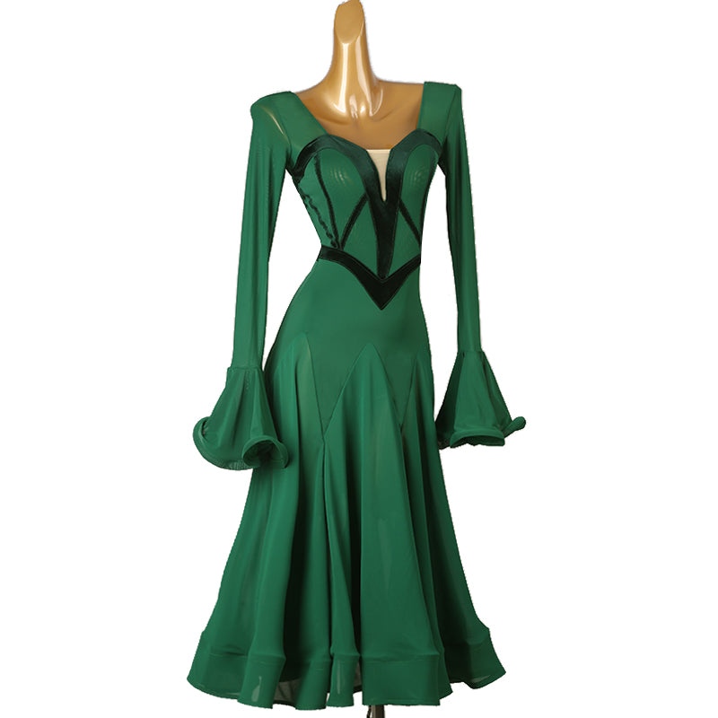 Customisable-Women's Long Sleeve Mesh Modern Dance Performance Dress Ballroom Dance Dress