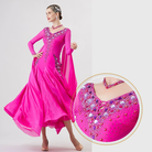 YUN Customisable-Women's Long Sleeve Backless VNeck Diamonds Dress For Ballroom Dancing Smooth Dress
