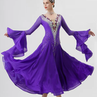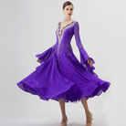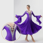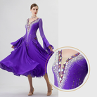 YUN Customisable-Women's Long Sleeve VNeck Backless Diamonds Dress For Ballroom Dancing Smooth Dress