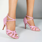 DS Women's Pink PU Customized Heel Latin Shoes Ballroom Dance Shoes