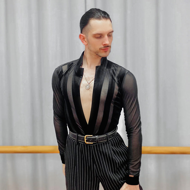 YJFY-Men's Long Sleeve V Neck Latin Dance Tops Dance Wear