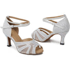 DS Women's Sparkling Glitter Mesh Customized Heel Ballroom Dance Shoes Latin Dance Shoes