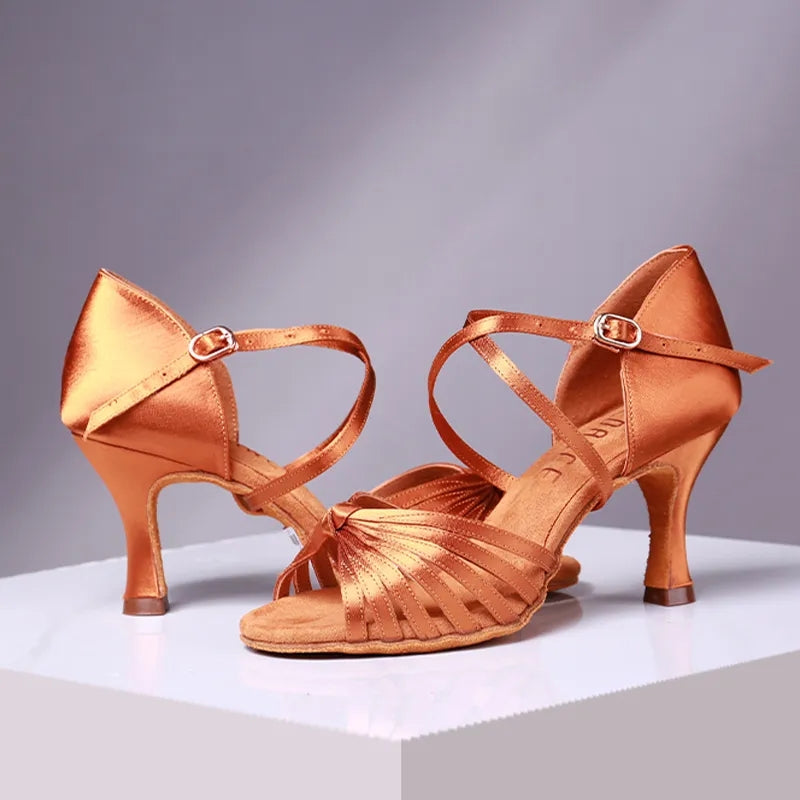 Women's 5.5/6.5/7.5/8cm Heels Satin Strappy Knot Dance Shoes Latin Dance Shoes