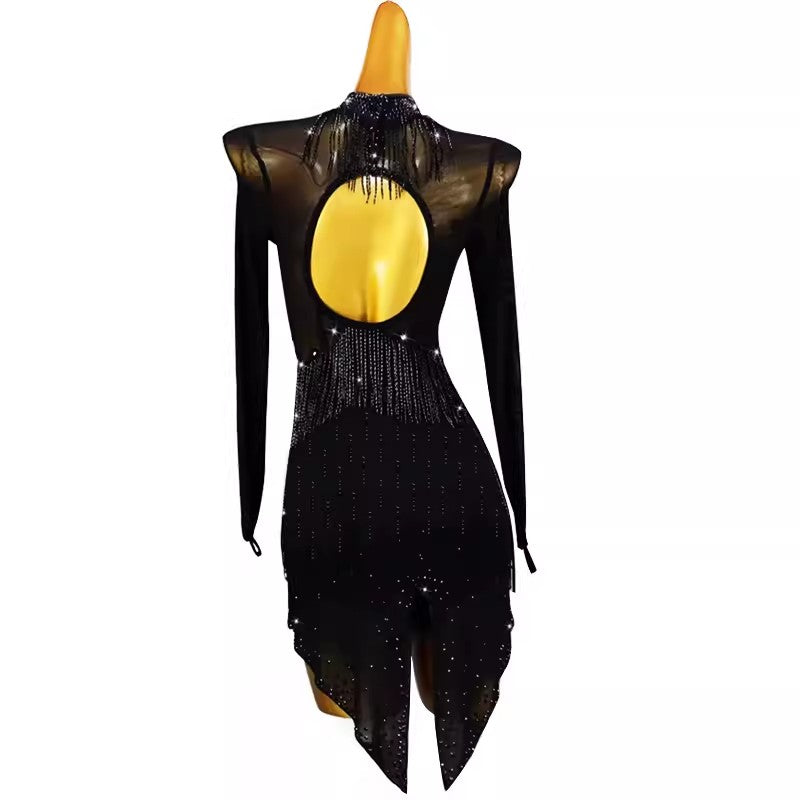Customisable-Women's Black Tassel DanceWear Dance Dress Performance Wear