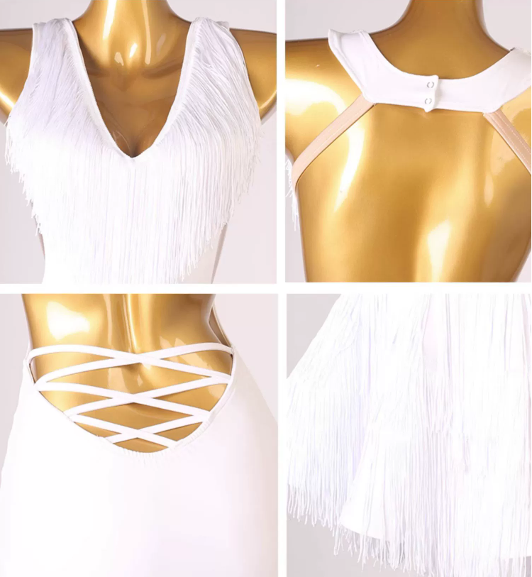 Customisable-Women's V-neck Tassel Backless Dancewear Dance Dress Performance Dress